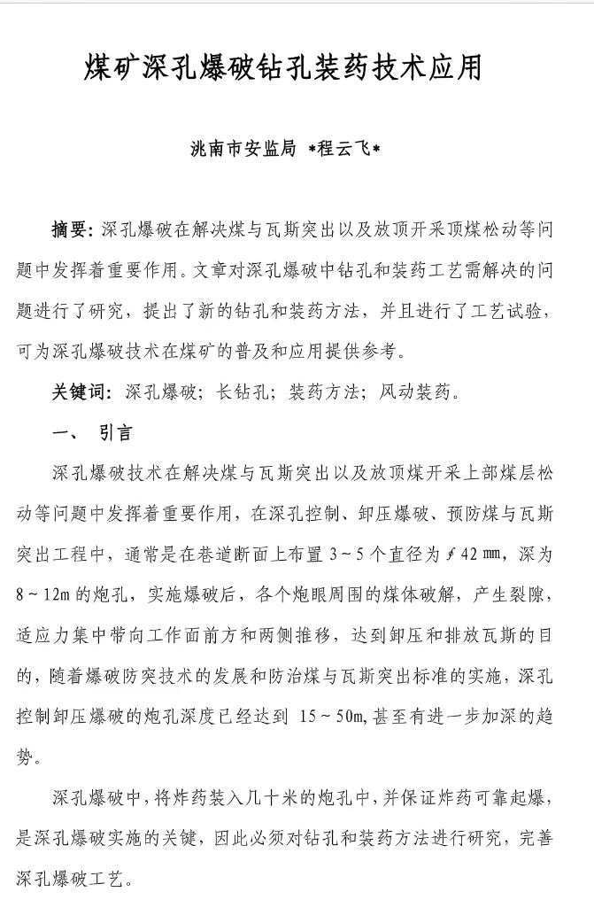 煤礦深孔爆破鉆孔裝藥技術(shù)應(yīng)用--BQFM煤礦系列